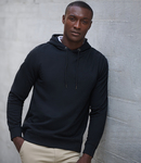 Soft cotton faced fabric. Drop shoulder style. Double fabric hood. No drawcords to comply with EU regulations. Front pouch pocket with opening for ear phone cord feed. Ribbed cuffs and hem.